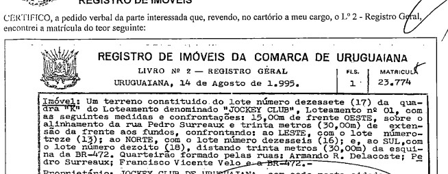 Os direitos e ações que o executado tenha sobre o seguinte bem imóvel: matricula 23774 RGI Uruguaiana, terreno 17 quadra K loteamento Joquei Clube 1. Medindo 15m frente oeste sobre alinhamento da Rua Pedro Surreaux por 30m da frente ao fundo. (matricula em anexo). Com um predio de alvenaria com 59,11m2 averbado com numero 705. Existe registro de alienação ficuciária.